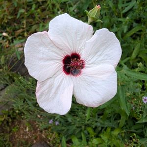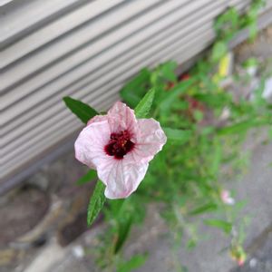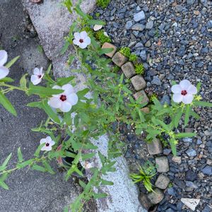 おはようございます☺ ヤノネボンテンカ タカサゴフヨウ フヨウ科 常緑低木 一日花 お花5cm位。 南アメリア原産 西日本中心に 野生化してます。 本当はお花白いけど、中心が深く赤いのと花脈が赤いので うっすらピンクに見えます。 蕾は、赤いです😌 このお花見つけるとつい後ろから見つめちゃいます👀