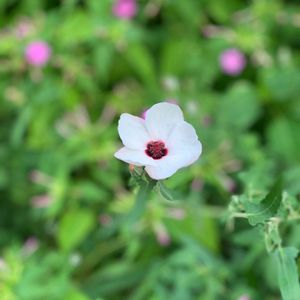 ローゼル?…と思ったコチラのお花…葉っぱの形とか、雌しべとか…フヨウの仲間ですね…🤔? …タカサゴフヨウ…かな…🤔🤔