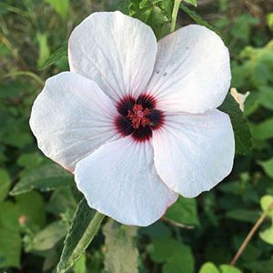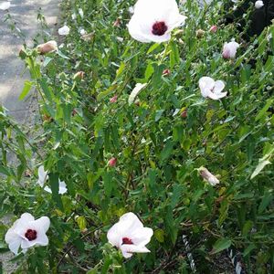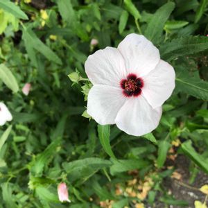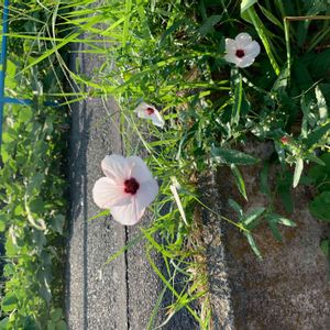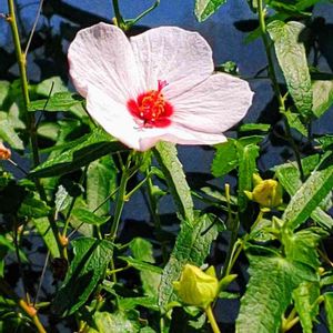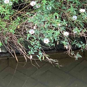 おはようございます😃 散歩が汗だく💦にならずに済むようになってきました。 近くの小川の石垣に生えています。 小さなムクゲのような花です。 葉の形から調べてわかりました。^_^ ヤノネボンテンカ (矢の根梵天花) 別名 タカサゴフヨウ だと思います。 今まで、ムクゲとフヨウを葉の形で区別していました。 これはわかりません。😅 こんな場所で育っています。 強いのでしょう。😊