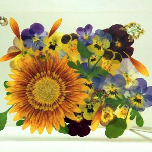 花がらつみ後のビオラのドライに初トライ❣️真ん中はガザニアです😊 フォトフレームに入れて飾りました✨