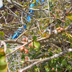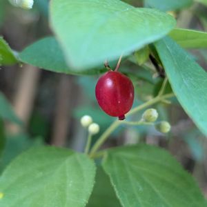 今年初めてウグイスカグラの実がなりました、樹高2.4mぐらいあってデカいのに全然ならないから授粉樹が必要なのかと思ってましたがどうやらユスラウメと同じである程度年数が経たないと実がならないタイプのようです。