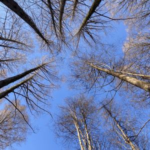 メタセコイア 1️⃣2️⃣メタセコイア 3️⃣ウグイスカグラ もう咲いていました 4️⃣ウメ ピンクだけ開花 5️⃣空 🏷️樹木見上げ隊参加 久しぶりに生田緑地散歩 🚶♀️