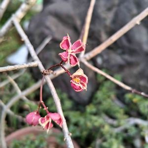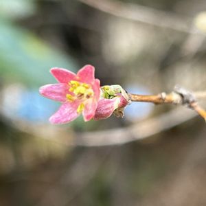 セツブンソウを見ようと🚌💨やって来た春には早い自然観察園で発見した密やかな春の妖精🧚♂️です。 1枚めは枯れ枝の先にピンクの小花🌸ウグイスカグラ 2枚めはカンアオイの葉に守られてフデリンドウが出てきています。小さな花の小さな小さなツボミがプツプツと・・・