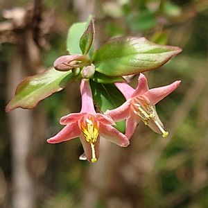 ピンク色のウグイスカグラ(鶯神楽)の花が咲き始めました、沢山咲き揃うのが楽しみです💗🌿 筒状花の長さ 1cm位 スイカズラ科 スイカズラ属
