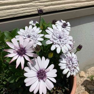 シャスターデイジーが咲き始めた😊 植え付けて二年目、今年は株が大きくなってるので、満開になるのをワクワク待ってます✨