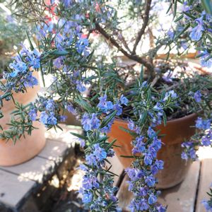 ローズマリーの花が満開です。 最初によくわからず買ったけど、濃い青色の花がとっても綺麗で好きです🎵 垂れてきたので、半ほふく性かも。この花の青さからモーツァルトブルーかな?