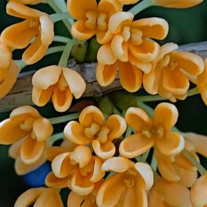 おはようございます😊 キンモクセイ モクセイ科 1月遅れで満開になりました💕 家だけでは無くて当地では公園も駅のロータリーも一斉に咲き誇り香りに包まれています✨ 2枚目はご近所の銀木犀です✨ ユカリさん主催の 🏷️2025秋の十草 4種目参加です❣️ 🏷️ビタミンカラー 🏷️幸せの黄色いお花 🏷️木曜日は木に咲く花