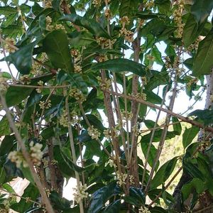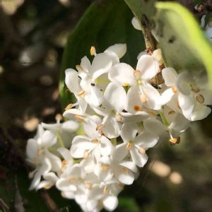 こんばんは こんな時間に投稿してしまいます 出先から帰宅途中で咲いていました 何の植物でしょうか? 兎に角、木でした 金木犀は終わった季節ですし 香りが少し強くてお花の香りに引き寄せられて写真を撮りました 工場の庭木に植えてありました ネズミモチ【モクセイ科】かな 柊の葉とは全く違います 何なんでしょう? ご存知の方いないですか? 凄く良い香りだったんですよ