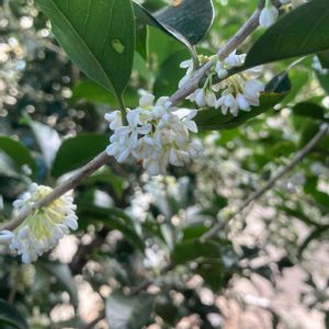 おはようございます。 銀木犀 見つけました。 住宅地のお宅のお庭 3回めの金木犀は、香りも薄くて、 こちらの銀木犀の方が 軽やかな 良い香りでした。😊