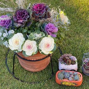 おはようございます😊 🌿寄せ植え🌿 初めて葉牡丹の寄せ植えにチャ レンジしてみました🌸🌺 でたらめですが葉牡丹って冬の お庭を華やかにしてくれますね ღˇᴗˇ🥀🥀🪷