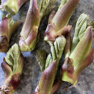 タラの芽収穫です。 強剪定して茎はふかし栽培にチャレンジです。
