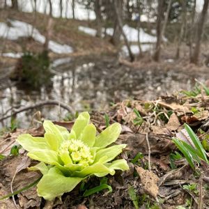 昨年の雪解け時期のフキノトウ 今日のお花「フキ」(昨年4月pic) 春が待ち遠しいです…🌸
