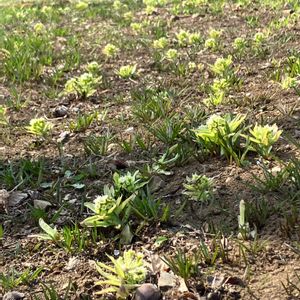 根っこ付きの行者にんにくもらった〜😃 行者にんにくの根っこってこんなに長〜いの😲 春の期間限定の山菜😋 まだちょっとちっちゃいから、畑に植えました☺️