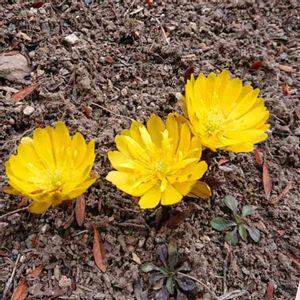 旦那の実家のお庭のあちこちに チョロリン!と咲いている福寿草
