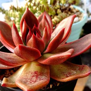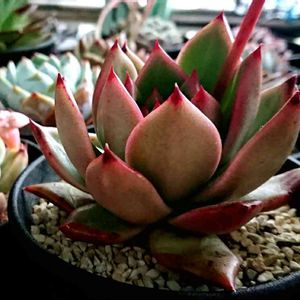 エケベリア属 アメストロー。😸😸 これ以上なかなか紅く染まらない…😓😓 これからまだまだ寒く厳しい冬は続くけど、どうなるかな。…😅 もっと、紅くなれ~(笑)😁
