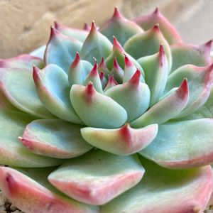 多肉さんご紹介183 ラウガ×プリトニス2301 青白い粉が全部ハゲてしまった件😅 以前のお姿は、「🏷𓈒MuuMかおん」で。 先日、こちらのコの上から 別のコをひっくり返してしまいまして。。。 全力で土をかぶました。 葉のスキマというスキマに、土が。 ブラシで土をせっせと取り除いていたら、 「あれ?こんな色やったっけ⁉️」 粉がなくなって、別人です😳 次回、同じようなことがあったら、 ブロアーで除けるのが正解でした🙌 気をつけます🧚♂️