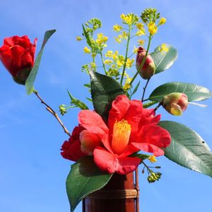 空から椿と菜の花の生花をお届けします。 赤い椿の花言葉は「控えめな素晴らしさ」「気取らない優美さ」「謙虚な美徳」。 鮮やかな見た目に反し、香りをもたない姿から連想される奥ゆかしい花言葉をもちます。 侍ジャパンおめでとうございます。 昨日は、湧きました。 バンザイ バンザイ お花の本を出版しています。お気軽にお問い合わせ下さい。 ninnin00421@docomo.ne.jp 迄