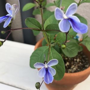 3年目のクレロデンドロム・ブルーウィング(英名ブルーバタフライ)が咲きました*\(^o^)/*💕 沢山の🦋が飛んでます、色合いも大好きなお花です🥰