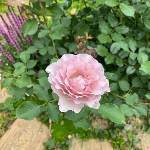 開いてきた ニューウェーブです🌹 カッコいい形のお花💜✨ 下の方は、お迎えしたばかりの アジュール🌹なんですが、 これも咲いてきました。 でも、お花は小ぶりです。