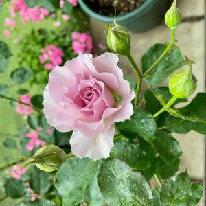 そして、ニューウェーブ🌹の蕾 こちらは、物凄く雨が強いです☔️ こんなお天気に、濡れた花を撮っている私😭 (はたからみても、変な人) この花色は、暗い方が良いのかも