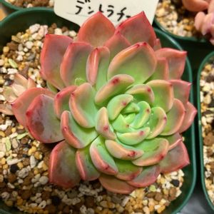 【エケベリア属 デントラ チェム】 Echeveria 'Dentra Jam' 別名 デントラ ジャム 韓国名 텐테라쟈부? 【エケベリア属 デントラ?】 Echeveria 'Dentra' ? Echeveria 'Dent Lahn' ? ネームタグは【テンテラジャブ】🏷 恐らく【テントラ チェム】、 もしくは【デントラ ジャム】の 誤植ではないかと勝手に憶測 マチガッテタラ、ゴシテキクダサイ (;-ω-)ノ 「Korean Succulent」として Etsyで売買されていたので、 韓国苗かと思われます 「チェムは韓国語でジャムのことっぽい」 ☝️と、ビスタさんのサイトにて 情報がございましたので、 「ジャム→イチゴ」で 「🏷️毎月15日はいちごの日」に 初参加させていただきますね イチニチオクレデ、スイマセン (;-ω-)ノ🍓 「内側が明るいライムグリーン、外側が鮮やかなスカーレットのグラデーションのムチムチロゼットを群生させるハイブリッド 韓国から入ってきたコで出自ははっきり分からないが、おそらく E. 'Dentra' か E. 'Dent Lahn' と同じものと思われる ~中略~ ラウ165やグリムワンに雰囲気が似ている」 ☆Source☆ 【多肉植物専門店 ビスタ】さん https://pukubook.info/detail/Echeveria_Dentra_Jam