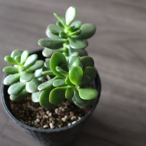 おはようございます🌿 新入りです クラッスラ・姫花月です 別名「金のなる木」 日本でも昭和初期から広まってる植物 おばあちゃん家でも育ててます笑 丸い肉厚な葉がかわいい☺️ 今日もよろしくお願いします☕