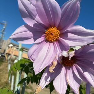 皇帝ダリアごやっと咲きました❗️ 夏の高温で枯れてしまったと思っていたら、下からめが出てきてくれました。 嬉しい😃 散歩中に見つけた、 斑入りだいだい 葉も果実も斑入りです。 初めて見ました👍