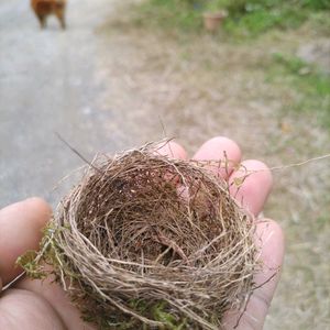 空き家 発見 ちょうど花を付けたカランコエがあったので入れてみる… 良いけど土流れちゃうので 水苔でナゴランとか小さめの蘭がいいかもね この後、巣ごとテラコッタイン 🪹▶️🪴
