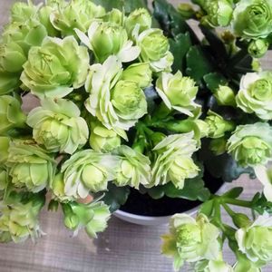 ❁. 。カランコエ'クイーンローズ パリ ホワイト。.❁ ホワイトグリーンの豪華な八重咲き品種🤍 存在感抜群でお洒落な色合いが魅力的✨ 何層にも重なる花びらは 薔薇のようでとっても目を惹きます😌 花もちも良く人気の高いカランコエです🌿 今月はバレンタイン🍫 他国では男性から女性へお花を贈るそうです💐 ぜひ皆様もお花を渡して感謝の気持ちを伝えてみてください💕 *育て方* 室内の明るい窓辺で管理してください☀️ 乾燥に強いので、水やりは土の表面がしっかり乾いたらあげてください🌱