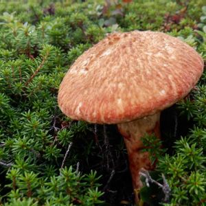 キノコはガンコウランの中に埋もれているのでこのアングル以外は撮れませんでした。 他の登山者の皆さんも見るでしょうし、何より引っこ抜いてしまうのはダメだと思いますからね。 植物はガンコウラン。 そしてキノコはイグチの仲間では無いかと思っています。 キノコはベニバナイグチでした。 8月13日 場所:八ヶ岳