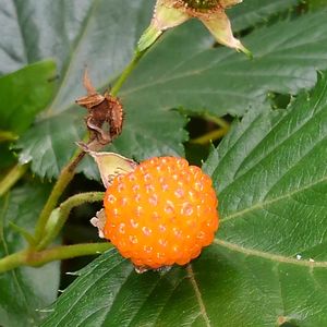 今日は昨日から🛵で⛰️にと 決めていた🤗➰🎶🛵💨💨 ヤマアジサイやトリアシショウマを 見たくて😉☝️➰🎵🎶 途中でオレンジ色の可愛い実が😉 カジイチゴだったかなぁ➰🎵 とりあえずUターンして ワクワクしながらパチリ➰📸 後は勿論だけど7つくらい パクリと今年初の山の実を 食べた😋 ちょっぴり甘くてみずみずしい 実を食べたら嬉しさと懐かしさに ニヤニヤ😆 さぁ どんどん頂に向かって トコトコ キョロキョロ🛵💨💨 カジイチゴ🍓
