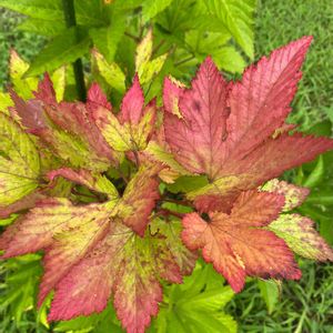 もう紅葉しています。 よく見たら昨年から生えている古い葉のみ色づいた模様。 秋の始まりとしていけてもいいかも??