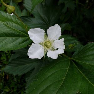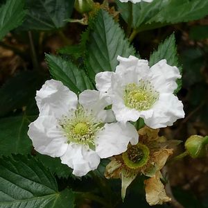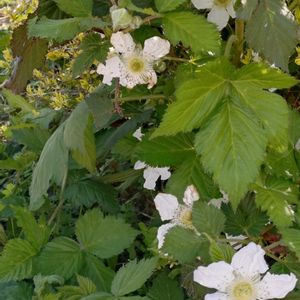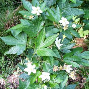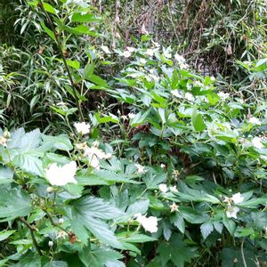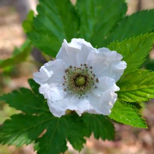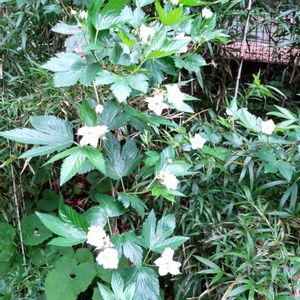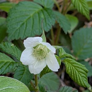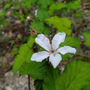 カジイチゴ バラ科キイチゴ属 落葉または半常緑低木 日本に自生するキイチゴの仲間 名前の由来は、葉の形がクワ科のカジノキに似ていることから付けられた。 暖地では葉の多くが越冬するが、ここ千葉県では落葉する。 本州関東以西、伊豆諸島、四国、九州に分布。 海岸や海沿いの山地に生える。 花期4〜5月 新しい枝先に3〜5個の白い花を咲かせる。花径は30〜40m、花弁は5枚でシワがある。 果期5〜6月 果実は橙黄色の集合果で、キイチゴの中では大型の20mm。 食べることができる。 ちなみに私のアイコンである。 🏷️白い水曜日♡ 🏷️秘密の花園♡ に参加させていただきます。
