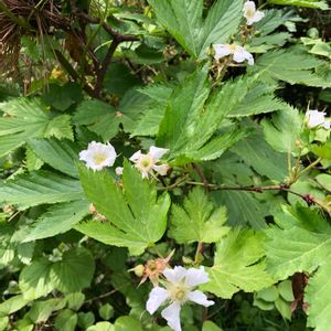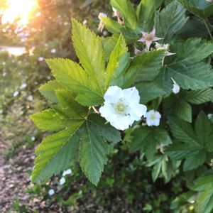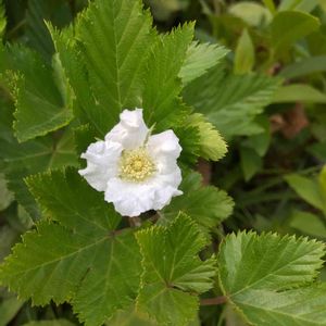うつうつとした日々の中 見かけたさわやかな白✨✨ 花は4~5㎝ 葉には✋状の深い切れ込み 🍓カジイチゴ🍓 (梶苺) バラ科 キイチゴ属の落葉低木 梶の木の葉に似ているからと言うので調べてみたら、全~然似てませんでした😝 とってもユニークな形でした 5.6月に黄色い甘い実がなるそうです
