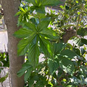 連投失礼します。 小屋の庭から カジイチゴの葉、ツヤツヤ✨