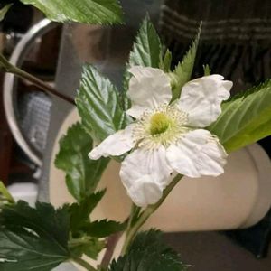 カジイチゴ 自宅庭にて、 葉っぱがきれいな赤色の縁取り 何なのかなあってずっと思ってて、 グーグル先生に聞いてもしっくりこなかった。 花が咲いてやっとスッキリ。 鉢植えなので、地植えしようとしてたけど、 大木になるらしいから、やめときます😅