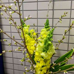 今日のお花 ~キンギョソウ~ です💠 最寄り駅の生け花です🌸 ヒガンザクラとのアレンジメント、 春の彩りが美しい💕 [2.25pic ]