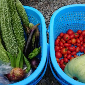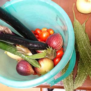 只今、収穫して来ました😃 ゴーヤは漬けて、その他の野菜は何して食べようか? 🥰キュウリは秋どれの初物です🤗