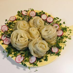 餃子でバラのお花を作ってみました〜🌹 盛り付けにセンスがなかった😅 普通の餃子より簡単にできました👍