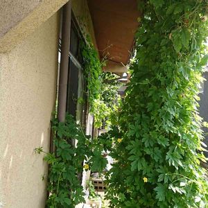 只今、ゴーヤはこんな感じです。カーテンはカーテンでも遮光カーテンなみ😅高いところは脚立で収穫😽