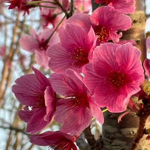 🌸陽光桜(紅) 陽光桜(ヨウコウザクラ)は、天城吉野(アマギヨシノ)と寒緋桜(カンヒザクラ)との交配により生まれた交雑種。 鮮やかな紅紫色の大輪の花を下向きに咲かせます。花付きが良く華やか。 中でも一際ピンク色の濃いコチラの紅陽光桜は、 紅吉野(ベニヨシノ)と寒緋桜(カンヒザクラ)の交雑種。 2023.3.11