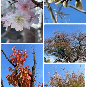 職場の桜🌸 ↖️十月桜が咲いています😊 ↙️紅葉しているのは陽光(ようこう)桜。 ↗️コブシの蕾が出ていました。 ↘️他にも桜が植えられています。 昼休みに散歩しました🎶