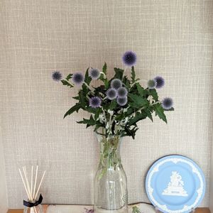 こんにちは。◕‿◕。 ルリタマアザミ 💜💜💜 庭で咲いたルリタマアザミをカットしました。 今年は小さめでお花も少なかった😢 しばらく部屋で楽しんでドライフラワーにします(*^^*)