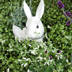 先日、我が家にお連れした うさぎさん🐰と サルビア チャメドリオイデス(ジャーマンダーセージ) と、わさわさのワイヤープランツ😅 手前はユーフォルビア ダイヤモンドフロストと 千紅花火(アルテルナンテラ)🎇✨
