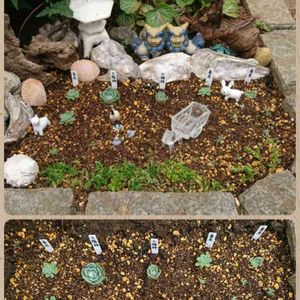花壇の空いたスペースに多肉を植えました❗ 手持ちの多肉が少ししかありませんので、今は色々な小物で飾り、いづれは増やした多肉を植えたいなぁ(^.^)💞 ただここは朝日しか当たらないのでちょっと心配です。