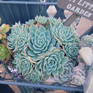 ☔️デス。 寄せ植えの中で少し増えてきました。 大型エケさんが、まるで日傘のようになってしまって... 緑のままデス🍀 春には植え替えて、群生を目指します!(^^)!