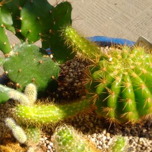 ボスのウチワサボテン君に猫パンチならぬサボテンパンチを繰り出す、金星丸くんo(^_^)o にゅっと出てきた子株達が手みたいなんです(笑) この子も自由に育ってますね いつかお花、咲かせてほしいなぁ♪