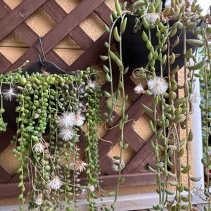 🍀万宝🍀 セネシオ・センペンス 年中、門柱の上に置きっぱなしの多肉さん達。 丈夫な子は暑さ寒さも何のその。🤣🤣🤣🤣😂 ニョロンと花首が〜🤗🎶🎵 🏷放ったらかし隊 🏷ニョロン(26日)の日 参加させて下さいね。