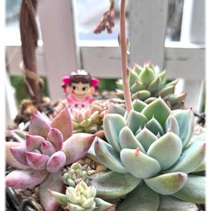 おはようございます😊 暖かい☂️ 昨日のお昼過ぎ 寄せ植え多肉に ピンクのお花が🌸 碧魚連さんのお花🌸 かわいい姿を 見せてくれました🥰💕