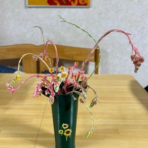 知らない人が見たら何じゃこりゃだよな。 次から次へと伸びてくる多肉の花。可哀想なので花瓶に生けてみました。